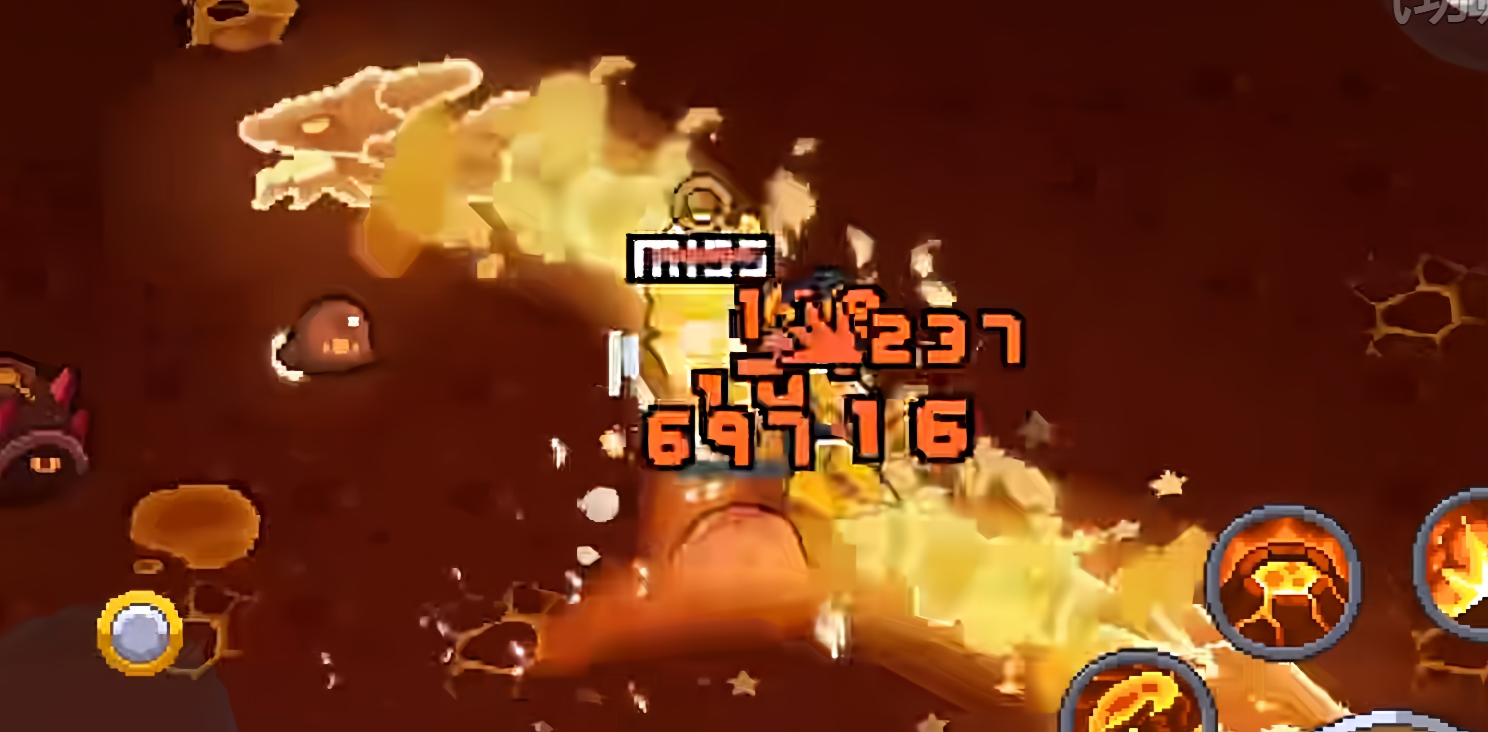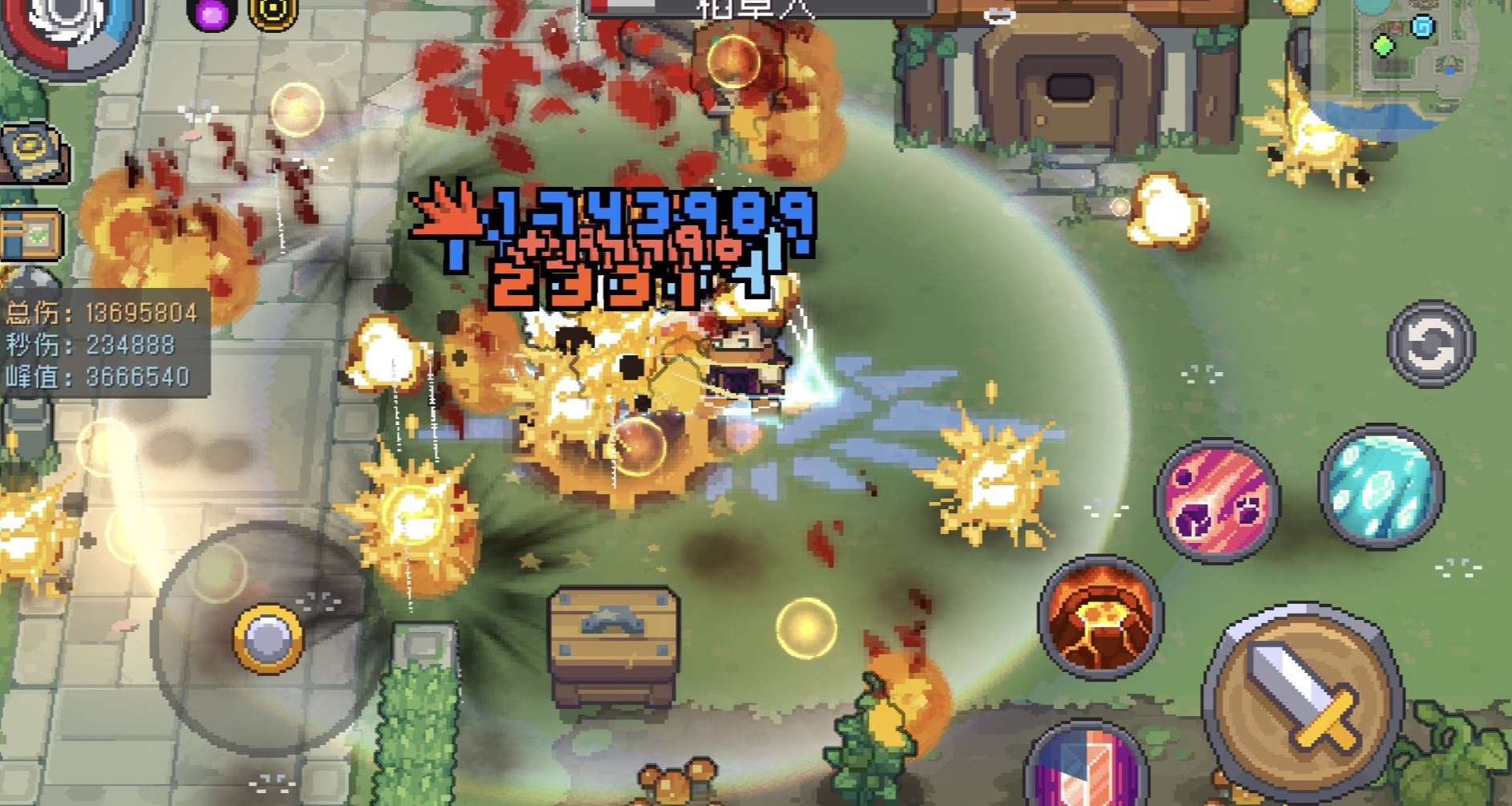 然后我们主要输出技能就是用火龙和小型火山打伤害,火龙配合火山非常好用,前期开荒很丝滑。特别是火龙自带追踪效果,并且火龙吃到火苗以后会变大,伤害也会提高。