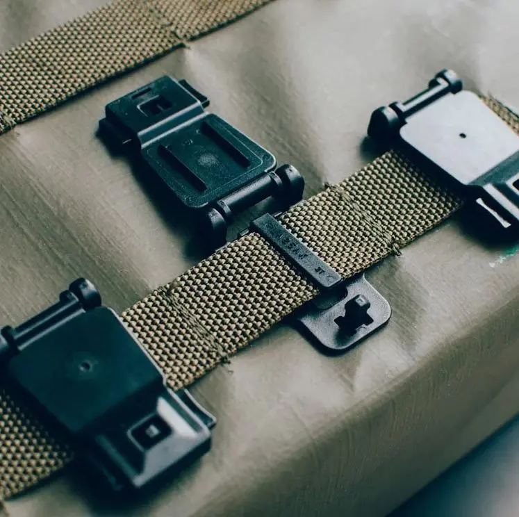 该系统将成排的重工业级尼龙缝合到防弹衣上,再辅以扣具、夹子、挂环等组件,模块化的将额外口袋与配件固定。目前,MOLLE已成为模块化战术装备的标准,取代了最早的通用轻型个人携带设备 (ALICE) 系统,大家可以很多暗区装备上找到它。