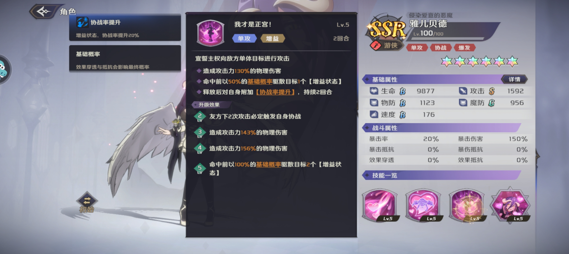 但是最为核心的一个点还是【协战】效果,雅尔贝德被动和3技能都有高额的协战加成。