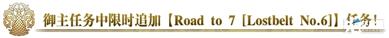 在以下时间段内,「御主任务」的「限定」一栏内将限时追加「【Road to 7 [Lostbelt No.6]】任务」。
