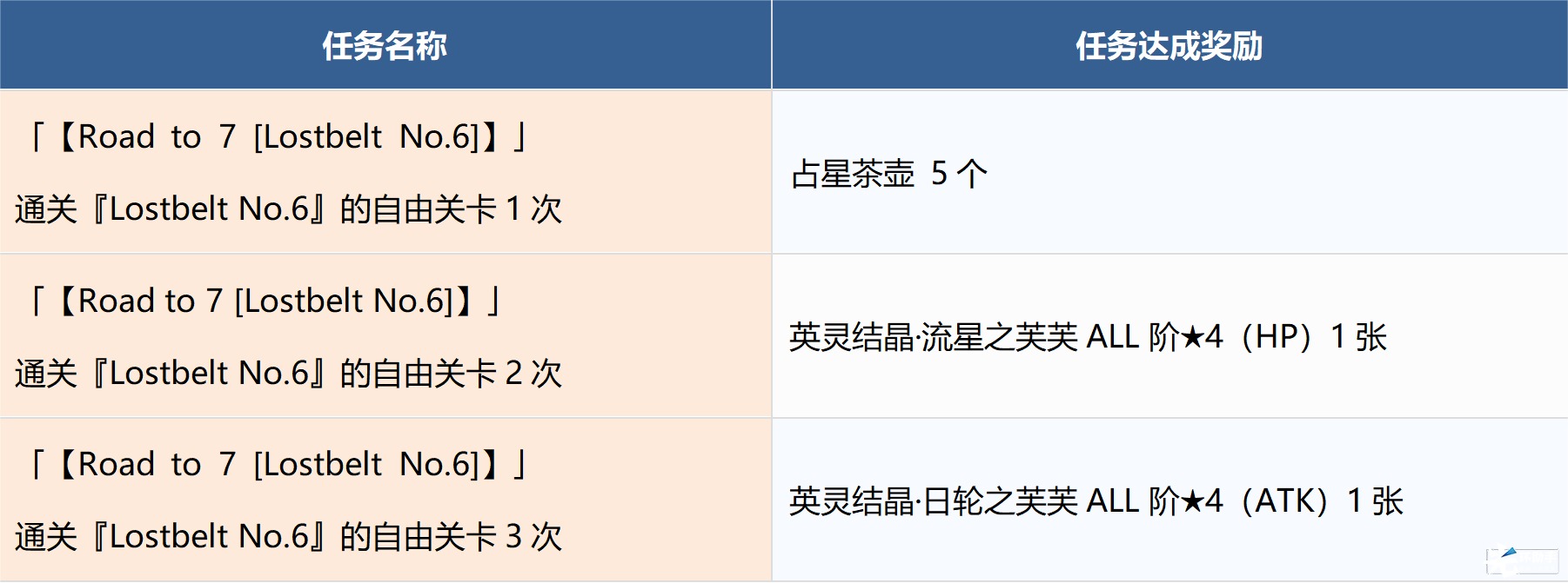 ※完成「【Road to 7 [Lostbelt No.6]】任务」不会增加周常任务进度。