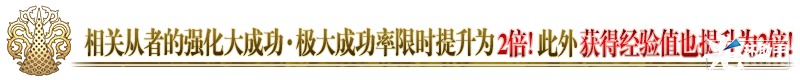 ■相关从者的强化大成功·极大成功率提升为2倍!此外获得经验值也提升为2倍!