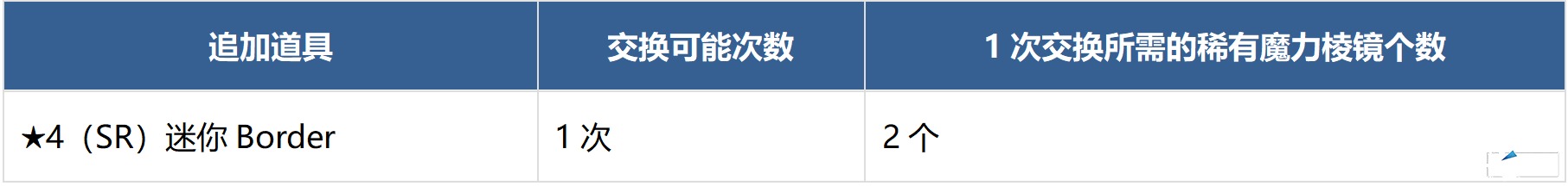 ※「稀有魔力棱镜交换」中追加的「★4(SR)迷你Border」为常驻道具,没有交换期限。