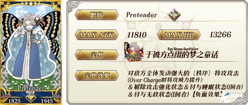 ※当「★5(SSR)梅柳齐娜(妖精骑士兰斯洛特)」处于灵基再临第1阶段或第2阶段时,在战斗中使用特定技能后将变化为灵基再临第3阶段,相应的一部分技能和宝具效果也将产生变化。此外,因技能效果变化为灵基再临第3阶段后,在此次战斗中无法使用同一技能变回第1·第2阶段。