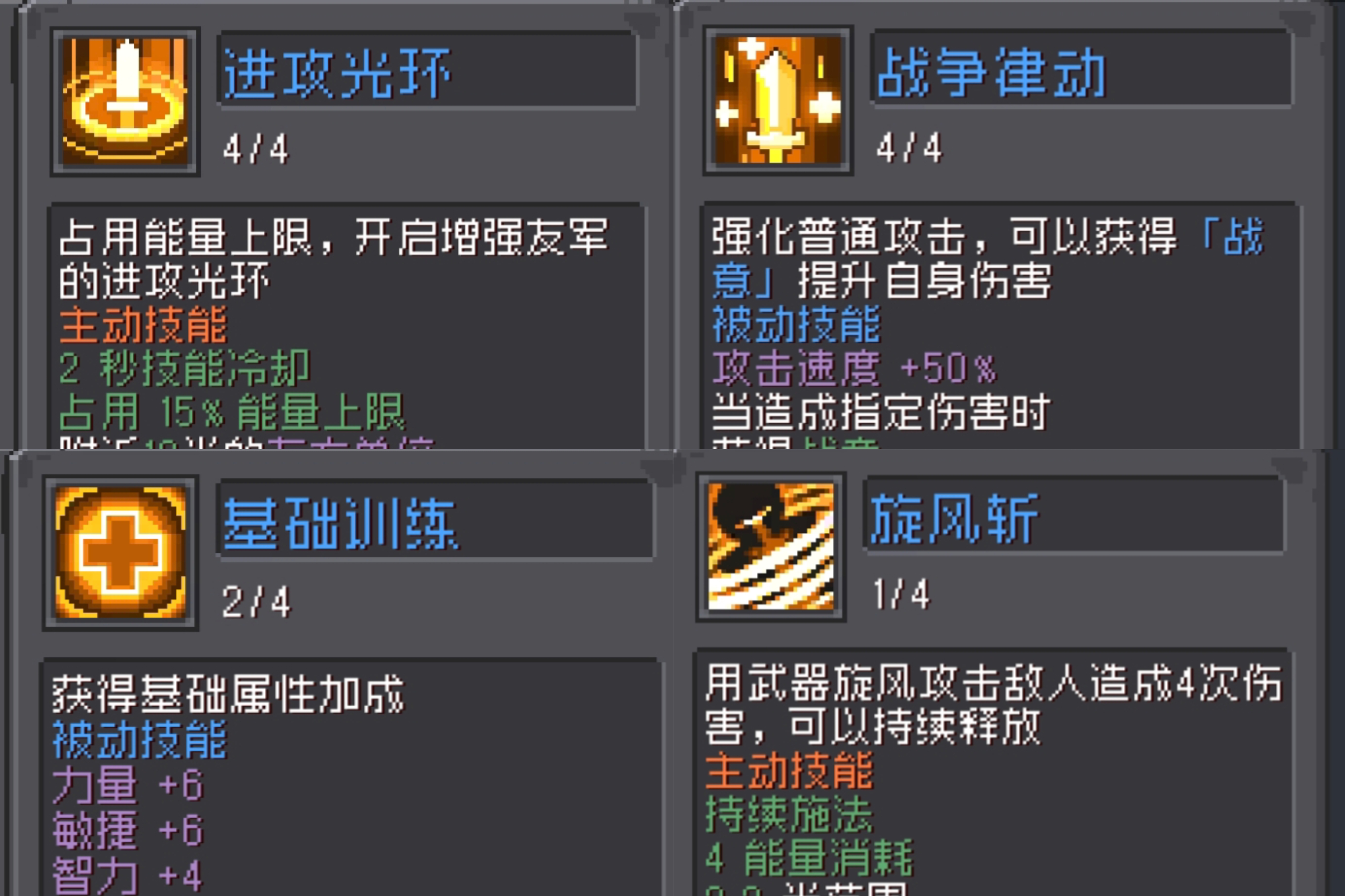 前期狮子开荒的打法思路就是利用【旋风斩】这个技能来打输出,然后搭配【生命吸取】和【能量吸取】进度非常快,非常好用。