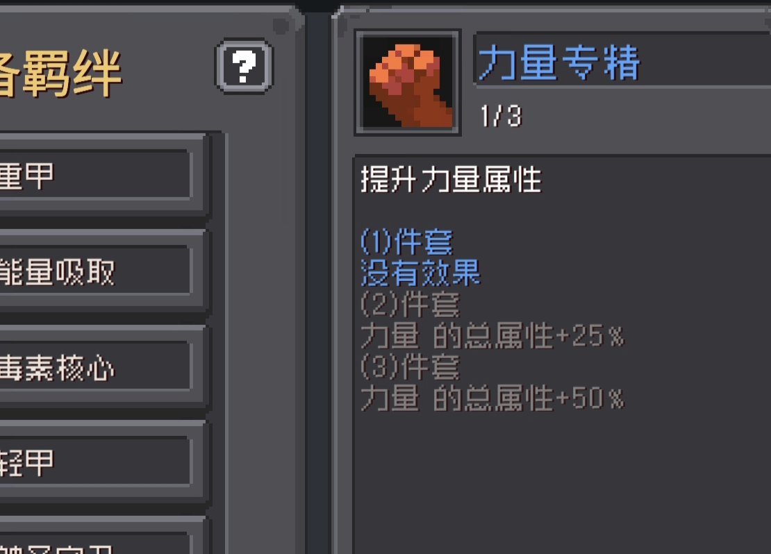 ⭐备选羁绊的话:像【力量专精】羁绊也是不错的。可以大幅度提升力量,加强攻击力同时也加了生命。