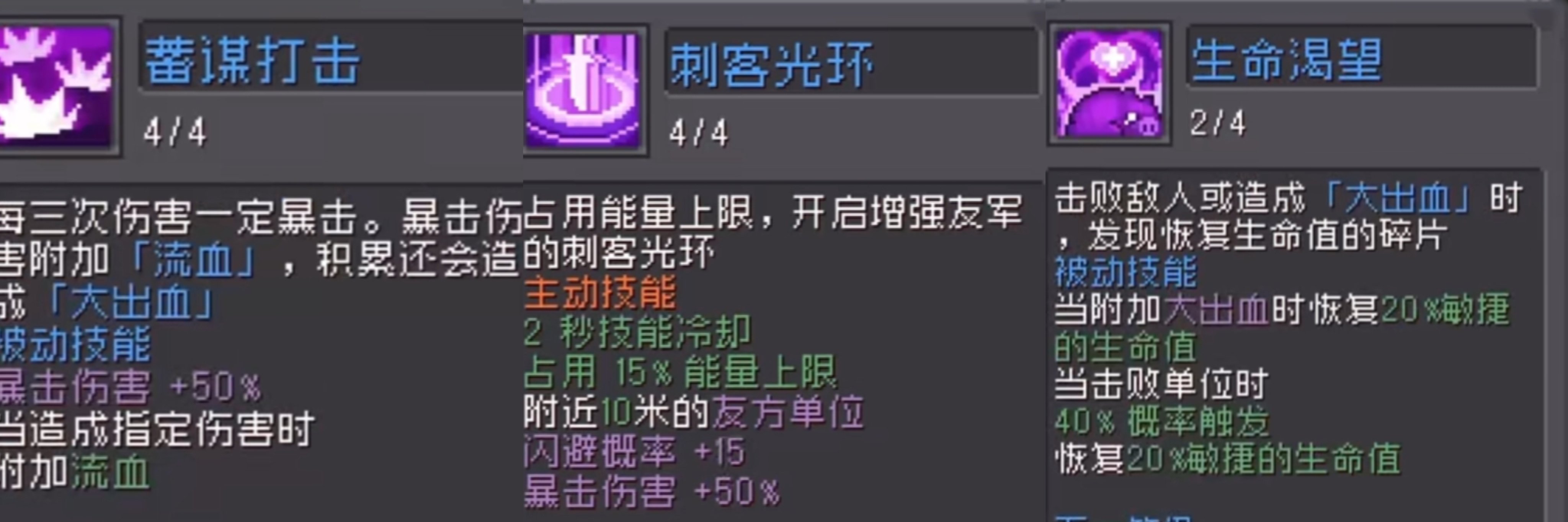 搭配生命吸取主要原因是刺客身板算是比较脆的,加上自身是近身攻击,所以搭配生命吸取自身的生命续航更高,容错率也更高。如果后面把盗贼的技能【生命渴望】加满的话,可以看不带【生命吸取】。