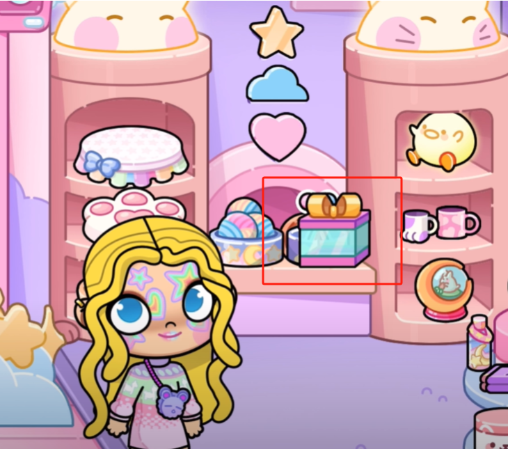 这样就集齐啦~回到美妆店放进去,就会掉下来一个小礼盒