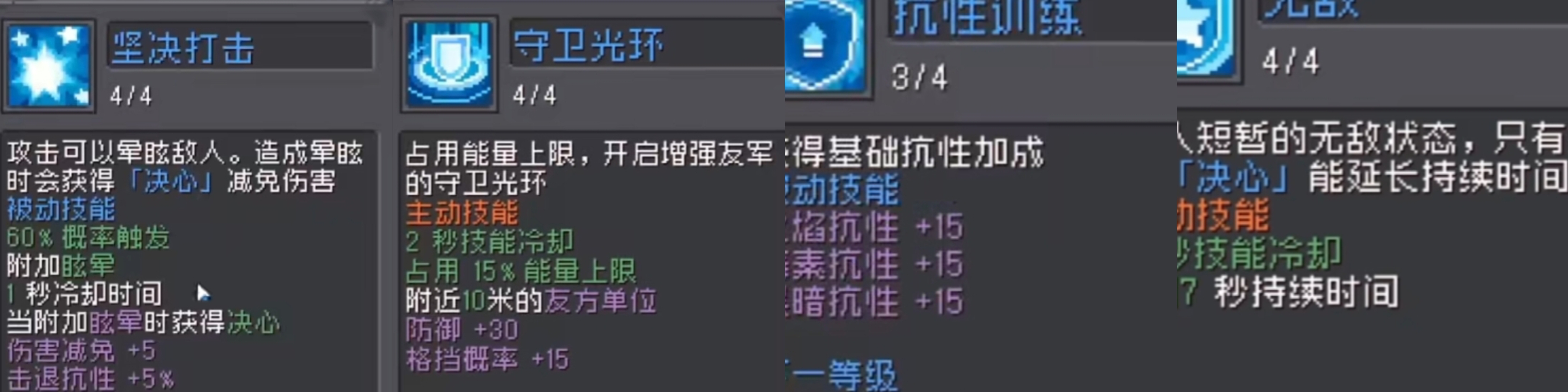 守卫光环和抗性训练加满大幅度提升防御和格挡。