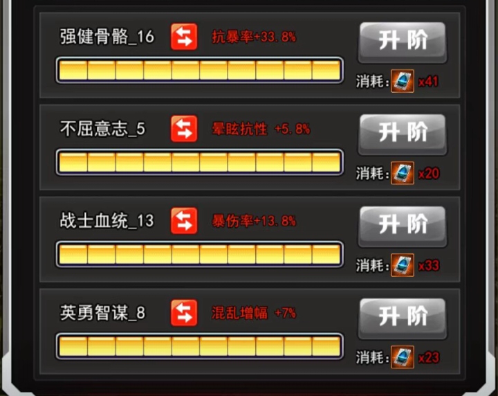 +17能量技 恐惧冲击[特技]对敌方横排造成600%的伤害。144%概率使目标<混乱>,持续1回合。提高自