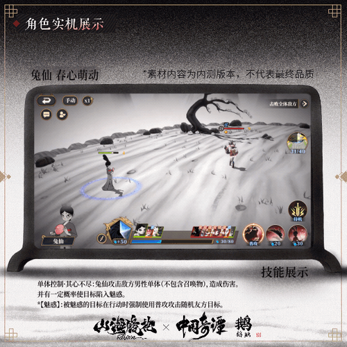 单体控制·其心不尽:兔仙攻击敌方男性单体(不包含召唤物),造成伤害。并有一定概率使目标陷入魅惑。