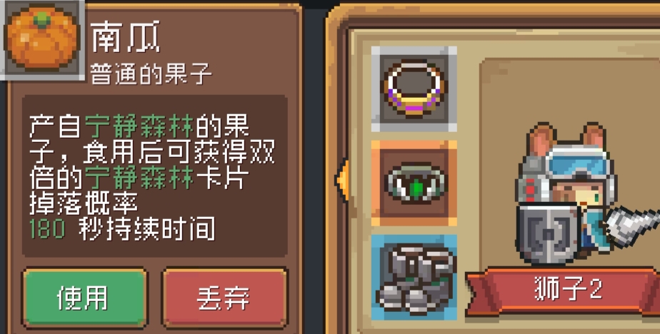 狮子大约是刷了10把左右的【宁静森林】才掉落的南瓜。