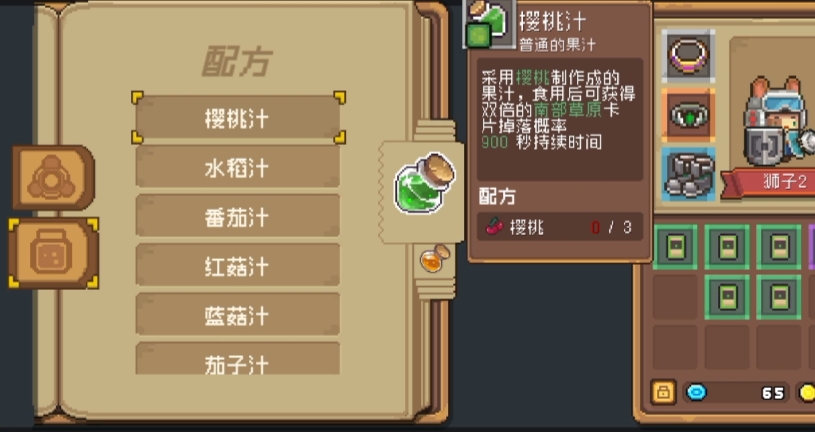 然后我们可以去找他制作【果汁】。果汁可以大幅度提升我们卡牌的掉落几率,时间为900S秒。