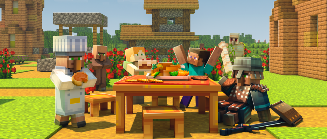 史蒂夫终于和村民们一起吃到了