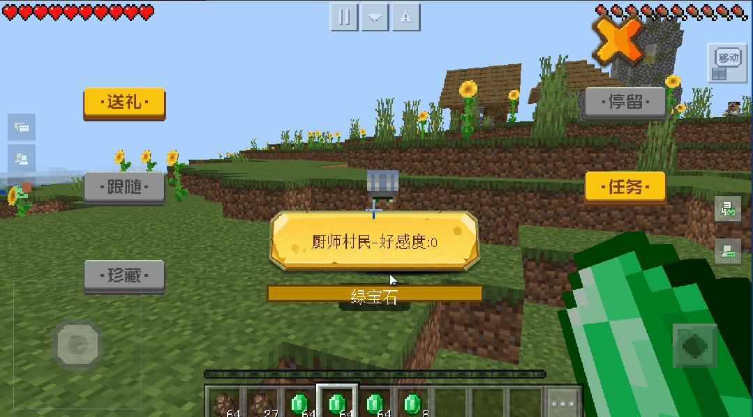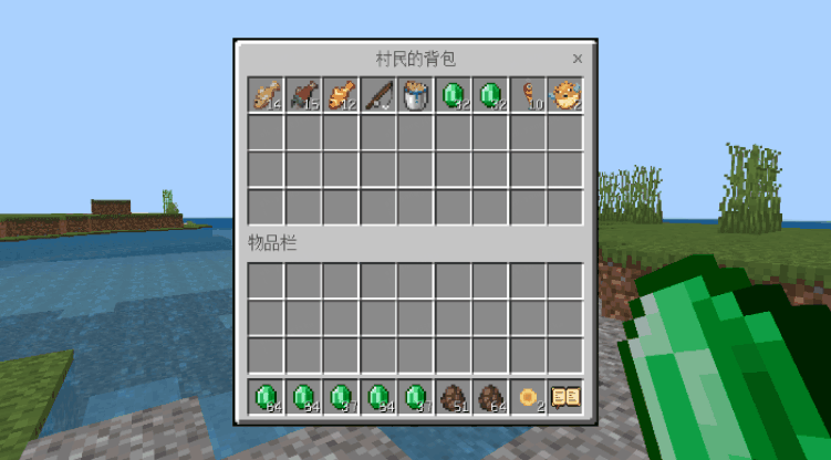 我和村民交易换来了很多绿宝石,快来和我交朋友吧