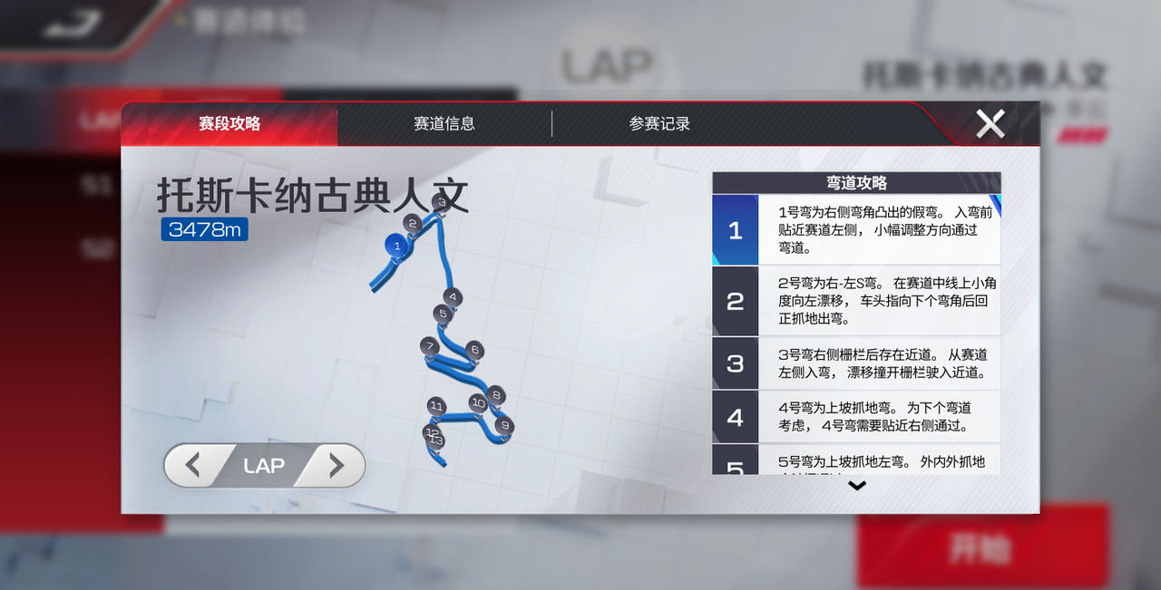 《巅峰极速》托斯卡纳赛道系列包含5条全新赛道,车手们将前往意大利中西部的文艺小镇开展激烈竞速。其中的托斯卡纳回首赛道单圈长度6.688公里,总计27个弯道,赛道高低差达290.8米,既有上坡抓地弯,也有下坡U型弯,赛道整体对弯道处理以及车辆稳定性控制的要求较高。让我们在文艺复兴发源地重聚,一同竞速迎新年!