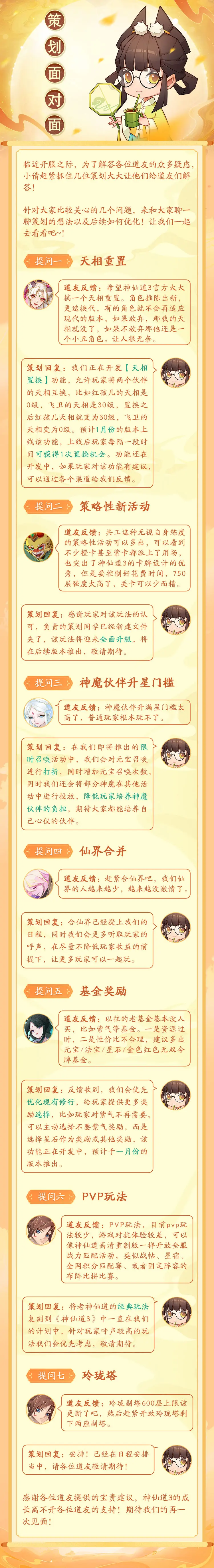 道友们还记得前阵子小倩向大家收集的【建议&反馈】吗~小倩主打一个有求必应!赶紧薅住几个策划大大来给道友们答疑解惑啦~