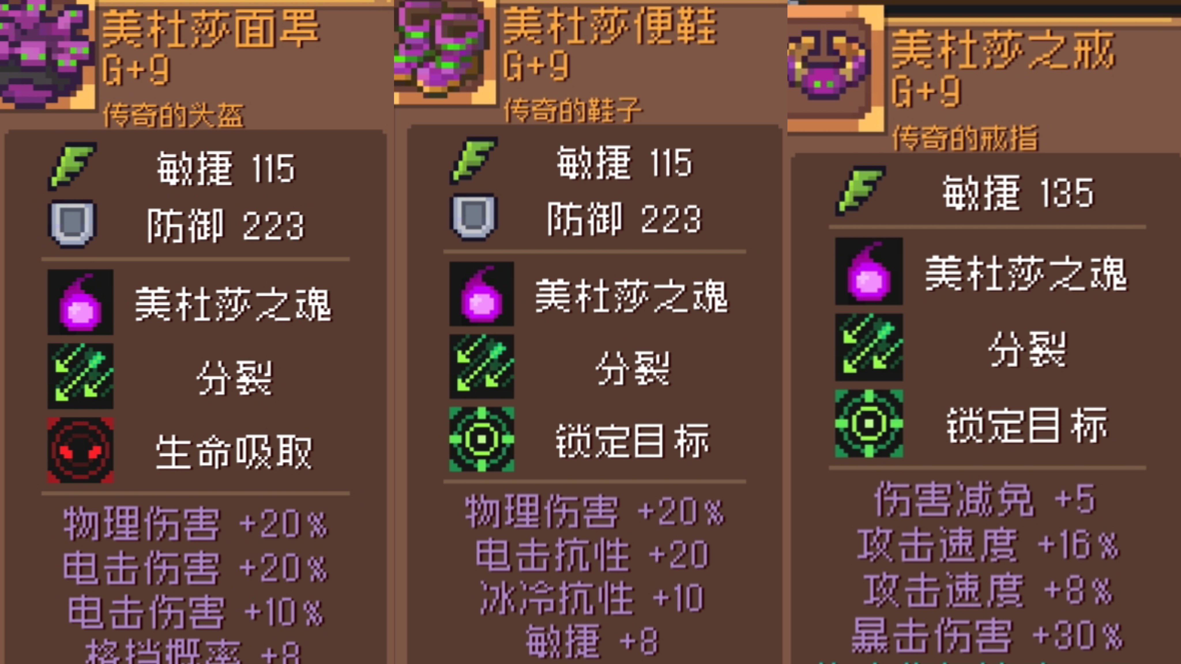 生命吸取能够让我们前期不容易死亡,前期尽量尽量拿3件套,不然很容易死亡,分裂是提升我们刷图效率和伤害的主要来源。