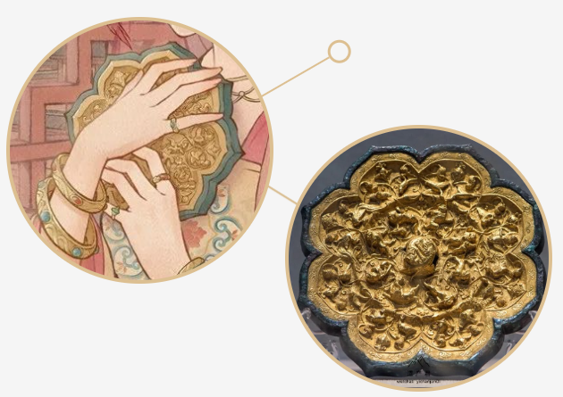 《这城有良田》本次与有着众多唐代珍贵文物的西安博物院进行联动,将镇馆之宝——金背瑞兽葡萄镜还原进了游戏中。