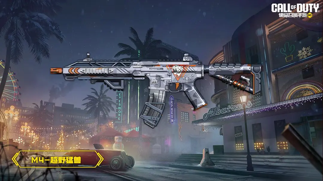 M4-越野猛兽采用高科技金属打造而成,枪身线条简约且现代,橙色的印花为整把武器注入活力,让其看起来就像稳定、可靠的性能怪兽。