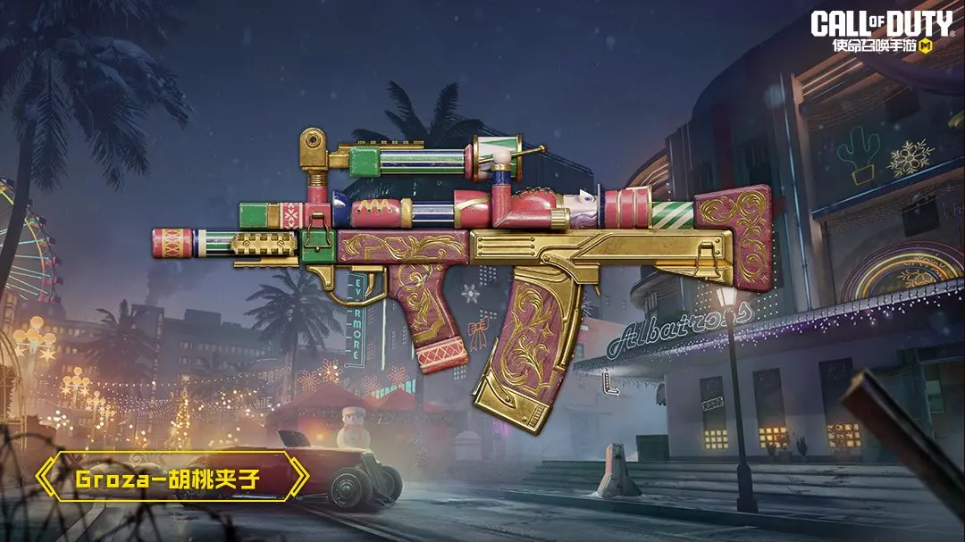 Groza-胡桃夹子拥有漂亮的金色花纹和丰富的色彩,枪身部件组成的军乐手正在敲打军鼓,精巧的射击让这把武器看起来就像大师手中的工艺品。