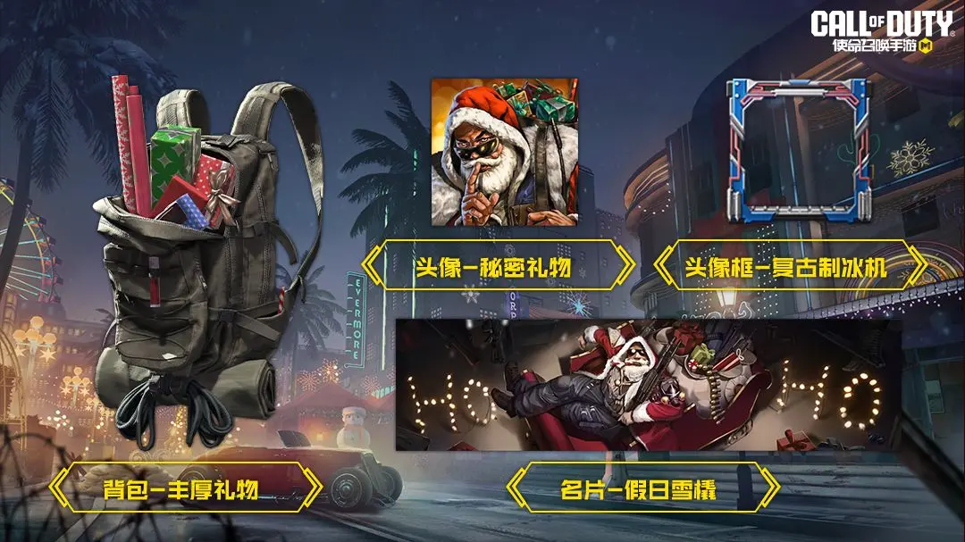 在S11使命手册“覆海的灵音”中,还有背包-丰厚礼物、头像-秘密礼物、头像框-复古制冰机、名片-假日雪橇等精美好礼等待与战士们共赴战场。