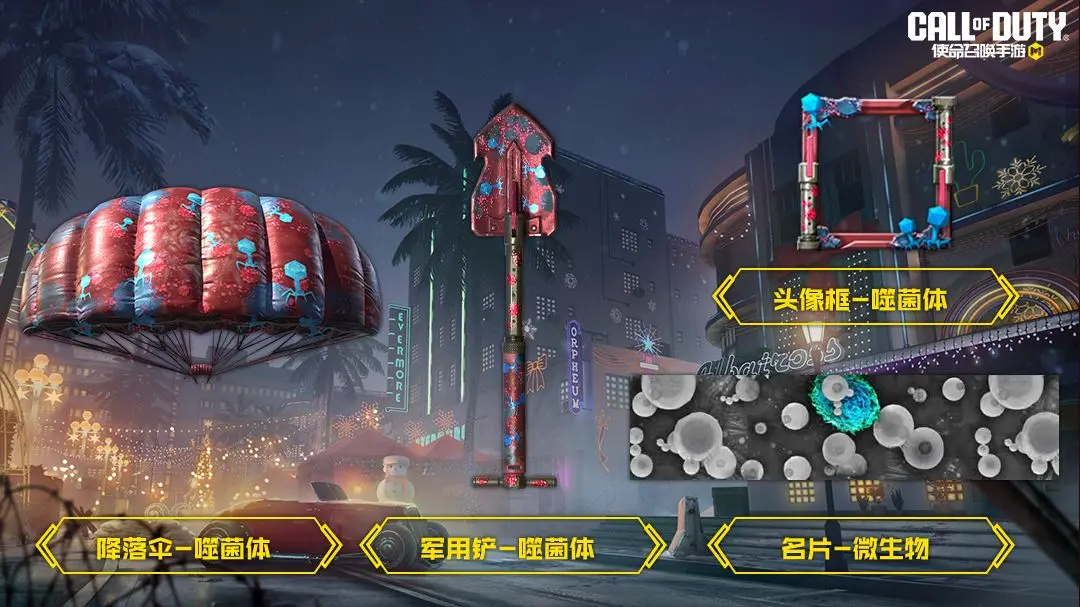 如果战士们解锁进阶版使命手册,还可以获得降落伞-噬菌体、军用铲-噬菌体、头像框-噬菌体、名片-微生物等进阶奖励哦~