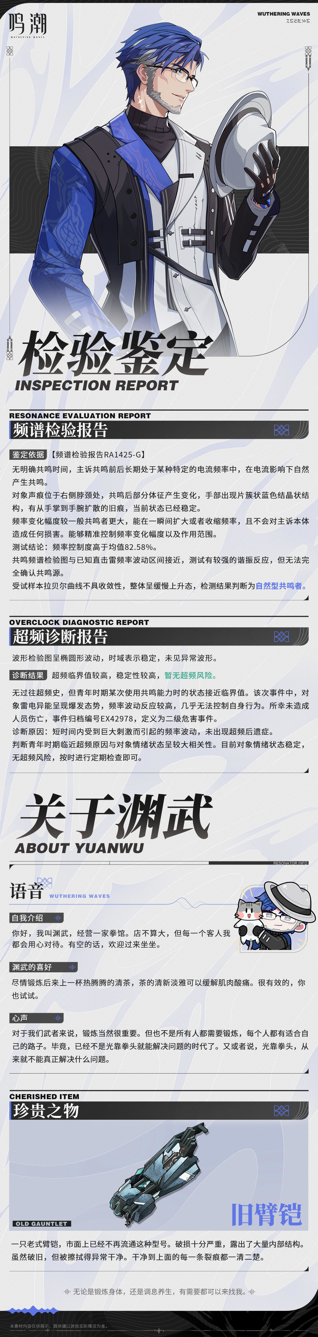 档案公开 | 雷曜八方——渊武光环小G发布于 2023-12-07关注资料加载中>>>✦渊武✦拳馆老板,精通雷煌拳和养生术,为人处世颇为温和,深受街坊邻居欢迎。《鸣潮》开发进行中,更多信息请持续关注我们,TapTap预约: