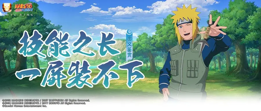 忍术的名称大多很简练,在形象的同时也不乏极简主义的美感。但有些“起名鬼才”在给忍术命名方面有着自己的独到理解,决斗场上滚动的字幕正是他们“文学素养”的证明。下面就让豚豚带大家看看那些名称超长的奥义吧! 天才初现这个话题怎么能少得了水门?他在忍术修行上的天赋与他的起名天赋成“正比”,自创忍术“螺旋天光极锐斩空闪壹式”。金色的身影在林间不断穿梭,最后手搓一颗螺旋丸给对手造成爆炸伤害。