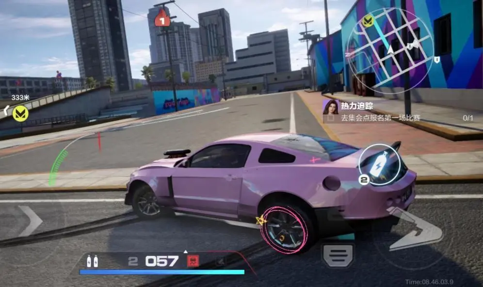 6. 甜甜圈漂移:主要用于炫技,操作方法为:车辆处于漂移状态且车速小于100km/h时,双击手刹键可进入甜甜圈漂移状态;车辆时速超过100km/h,自动退出甜甜圈漂移状态。