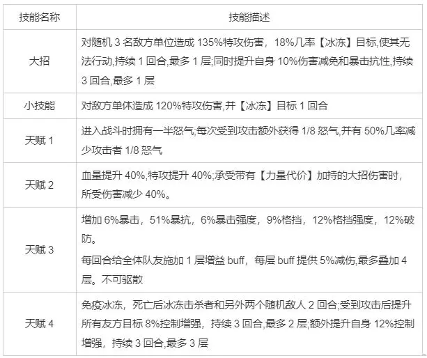 冰晶凤凰是一位水系SSR精灵,专注于战场控制,能通过其技能有效地干扰敌方单位的行动。它的大招能对敌人造成显著伤害的同时有几率冰冻他们,削弱敌方的进攻能力。小技能更是直接冰冻目标,为团队争取宝贵的优势。天赋4能力,即在阵亡后冰冻击杀者及其他敌人,给予了冰晶凤凰即使在倒下时也能对战场局势产生重要影响的机会。这让冰晶凤凰在团队中的价值不仅仅局限于其生存时间,而是一个持续威胁的存在。