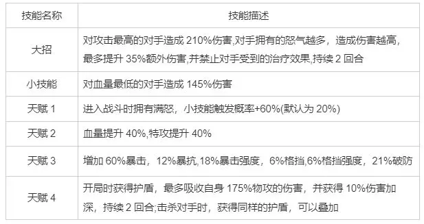刀锋秃鹫是一位擅长定点输出的火系SSR品质精灵,其定位为脆皮杀手,意味着它在瞄准敌方的关键脆弱目标时尤为高效。刀锋秃鹫的大招设计用于强力打击攻击力最高的敌人,并在敌方怒气充沛时得到额外的伤害加成,同时施加禁疗效果,能够严重干扰对手的战术安排。而小技能则针对生命值最低的敌人,进一步压迫已经岌岌可危的对手。通过其天赋技能,刀锋秃鹫在战斗中保持满怒,有更快的战斗节奏,而且得到了大幅度的生存和攻击面属性提升,特别是其暴击率的巨大增幅,使得它能够进行高额稳定的输出。天赋4增加了其生存性,通过护盾吸收伤害,并在击杀敌人后重获护盾,这为它在场上的持续威胁提供了坚实的保障。刀锋秃鹫在作为精灵对决中的战术中扮演着极为关键的角色,能够让对手的关键角色在战场上难以施展。