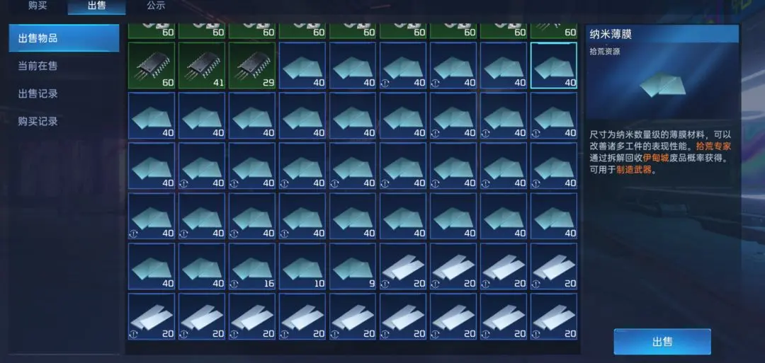 2.近日实例:因为45级需要制作护盾升级单元和大量新源码,碎裂兽骨、细胞黏液(45级前白菜价)、轻皮、硬皮等在45级开放后的几天内都会持续涨价甚至无货;这里特别说明细胞粘液:很多区在44级的时候,它甚至跌到了100金以下,45级开放后所有区都是无货状态,这时有货的小伙伴也不要着急卖,他会在后续几天从100金慢慢涨至200多金,甚至更高,在需求度降低后恢复正常价格。