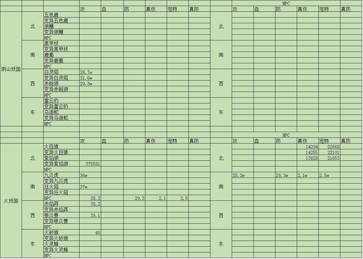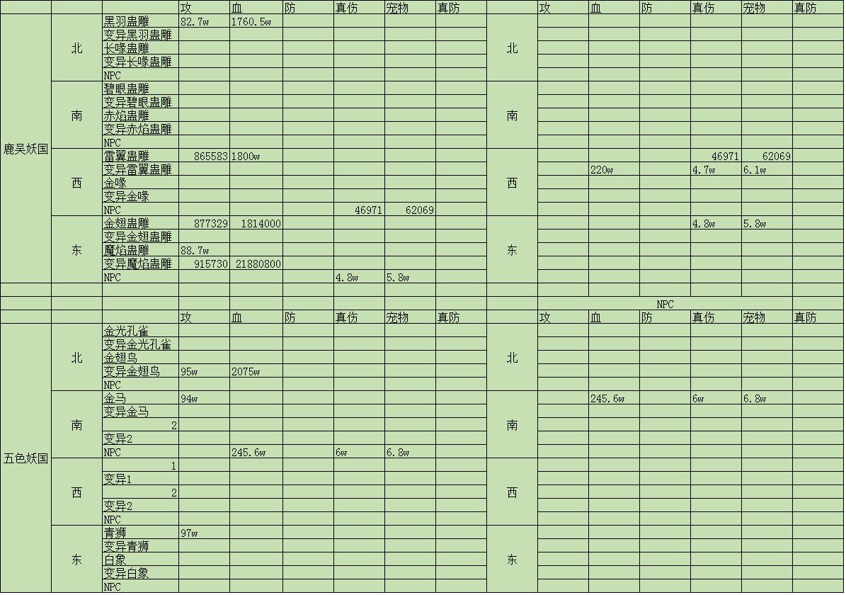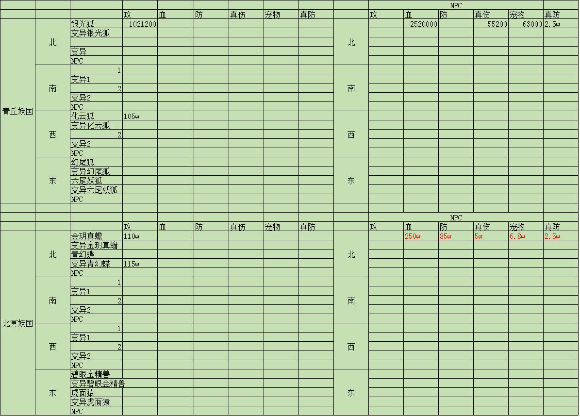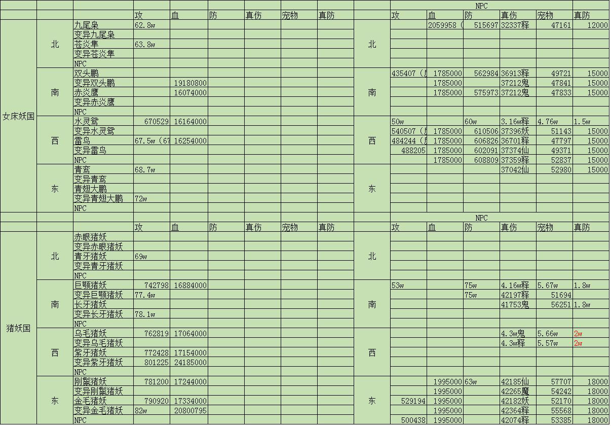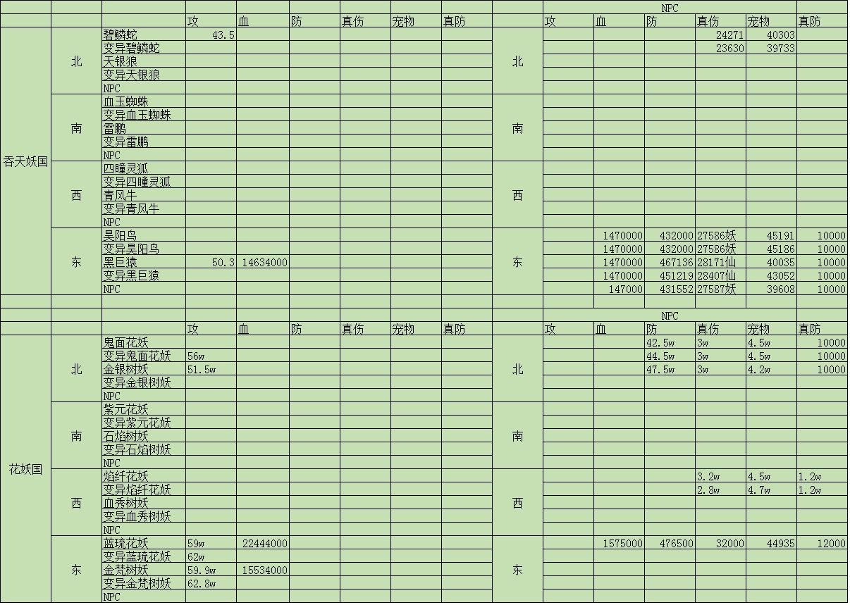 征集下各个妖国的NPC属性,妖兽攻击,最好具体到个位数