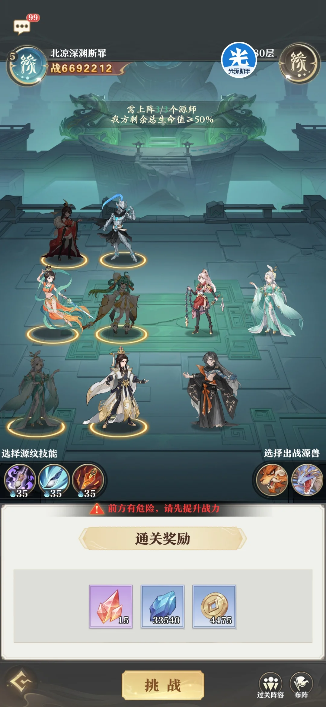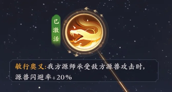 只要上阵2只橙色源兽,哪怕都是0星,奥义一提供的40%源兽闪避对整体战斗都会有极大的影响,无论是PVP对战还是PVE打各种活动,源兽的伤害占比都是挺高的,多闪避几次源兽攻击甚至可能改变战局(尤其是对爬塔和日月天堑),我内测到现在玩了5个多月,爬塔第一次出现危险提示!