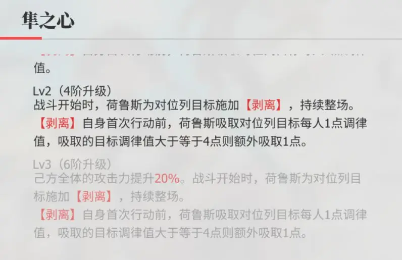 十分强力的被动技能,可以说荷鲁斯有很大一部分强度都与被动息息相关,6阶时不仅可以吸对面的能量,还可以提升全队攻击力,技能的额外伤害效果也可以轻松触发。