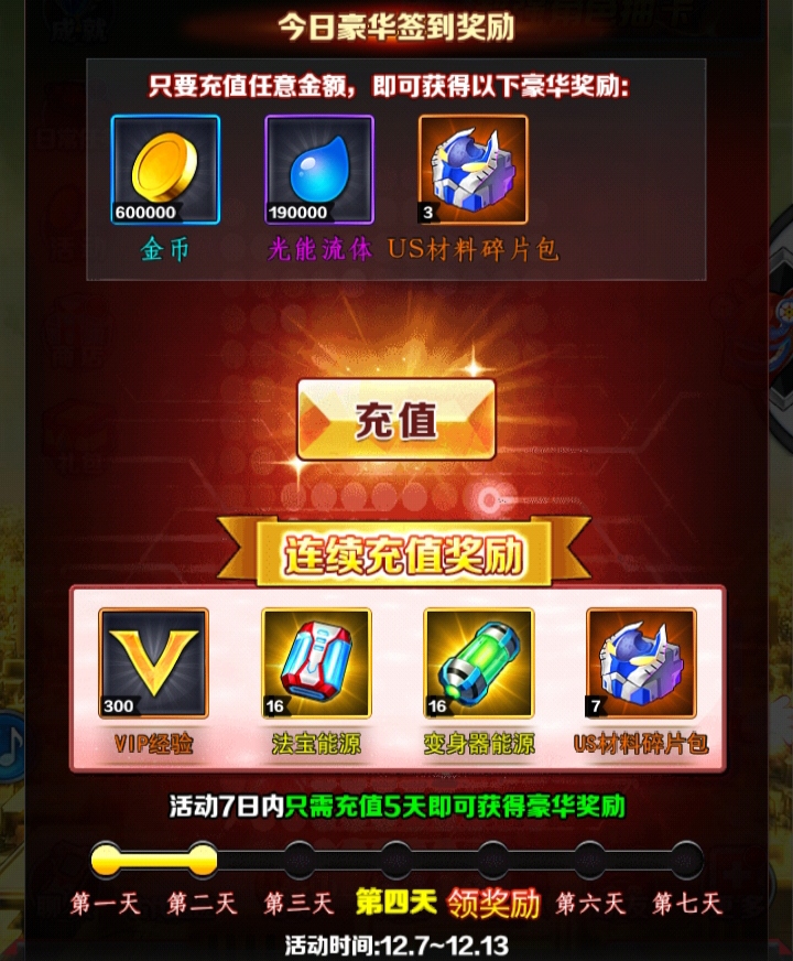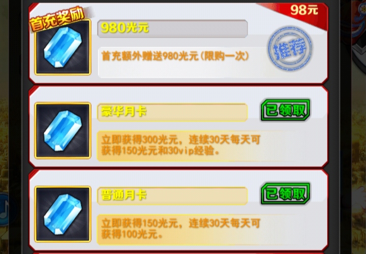 单充:单笔充值对应金额领取单充道具 无法领取礼包道具