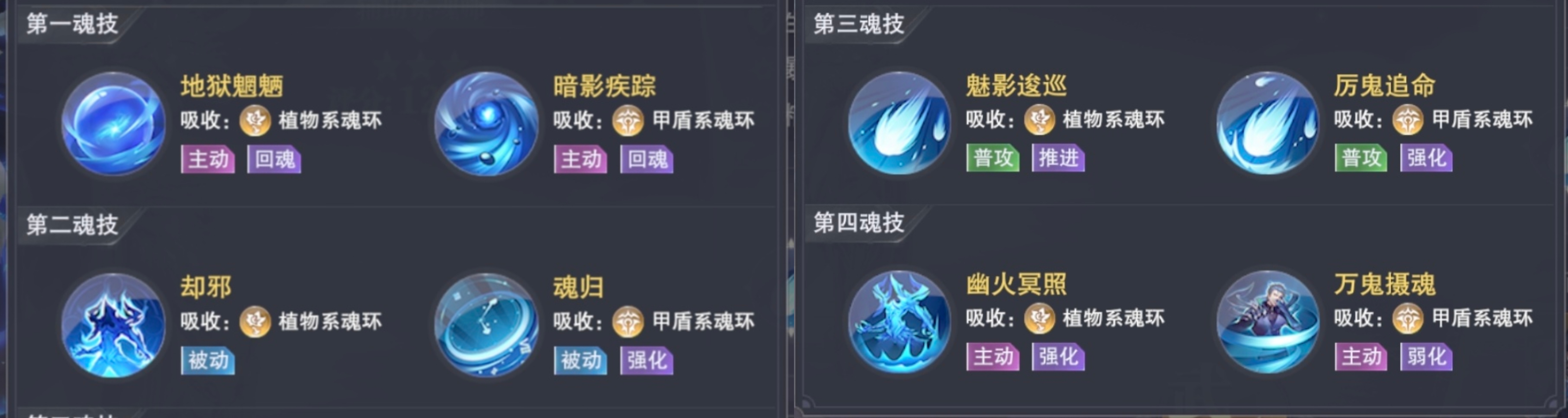 魂环配置推荐地狱魍魉+却邪+魅影逡巡+万鬼摄魄