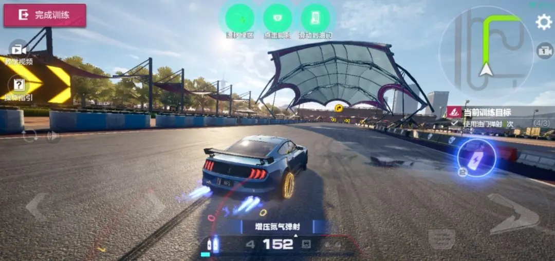 不仅过弯要丝滑,出弯也是决定直道速度的一个重要环节。出弯的第一种进阶技巧是增压氮气,车手们在漂移过弯时先点下刹车,然后从氮气按键滑向油门按键。这个技巧相比油门弹射出弯+氮气加速过弯速度更快,而且氮气动力也会更强,能够在出弯的时候拥有比对手更大的加速度,在直道开始时就能占据先机。