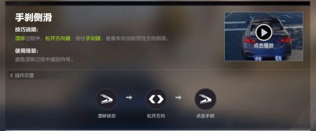 首先在连续同向直角弯或者半径比较大的回头弯中,车手们可以在漂移的过程中使用手刹侧滑技巧来绕过弯心,直接从出弯的地方开始加速,避免了弯中二次漂移或者撞到弯心带来的速度损失。具体操作方法是在漂移过程中再次按下手刹按键,赛车便可以横向滑动。按住的时间越久,滑动的距离也越长,但是同时速度也会更低,车手们要视情况及时松开手刹准备出弯技巧哦。