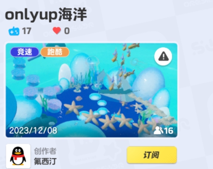 创意星图推荐——onlyup海洋小黯.发布于 2023-12-12关注 地图名称:onlyup海洋作者:氟西汀地图介绍:海洋主题类的长竞速跑酷图,也可以是张观赏图,美的享受~ 等待上传中... 视频上传中…100.0% 视频上传失败,请重新上传 重新上传 更改封面