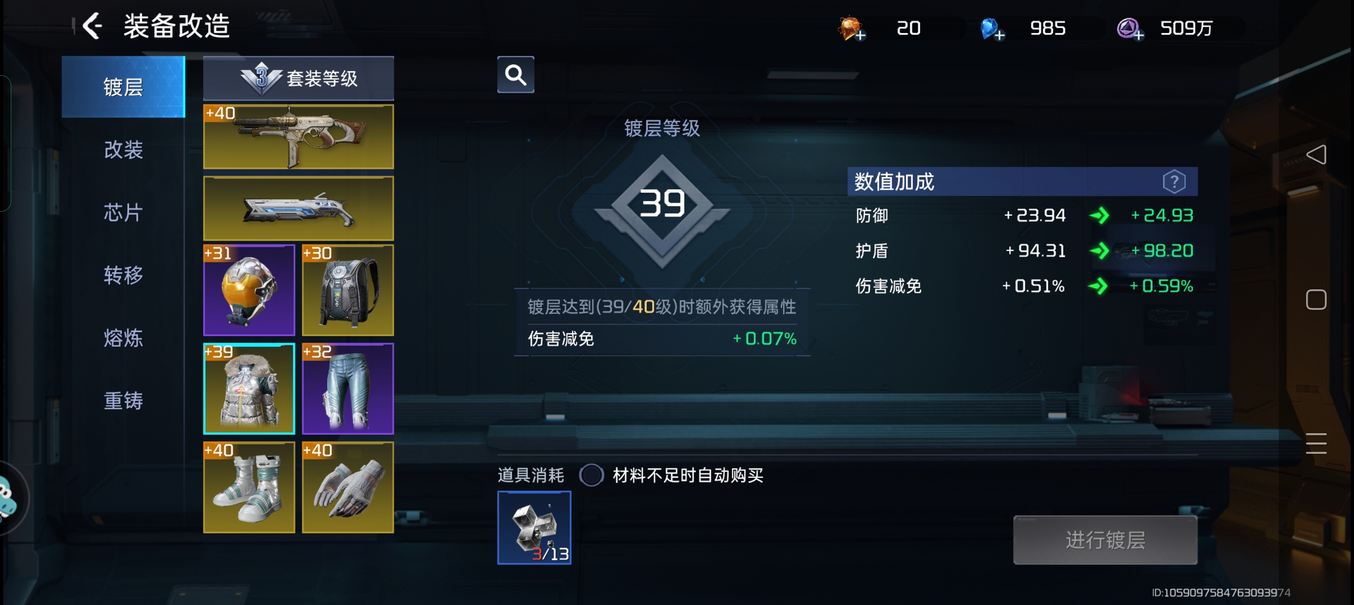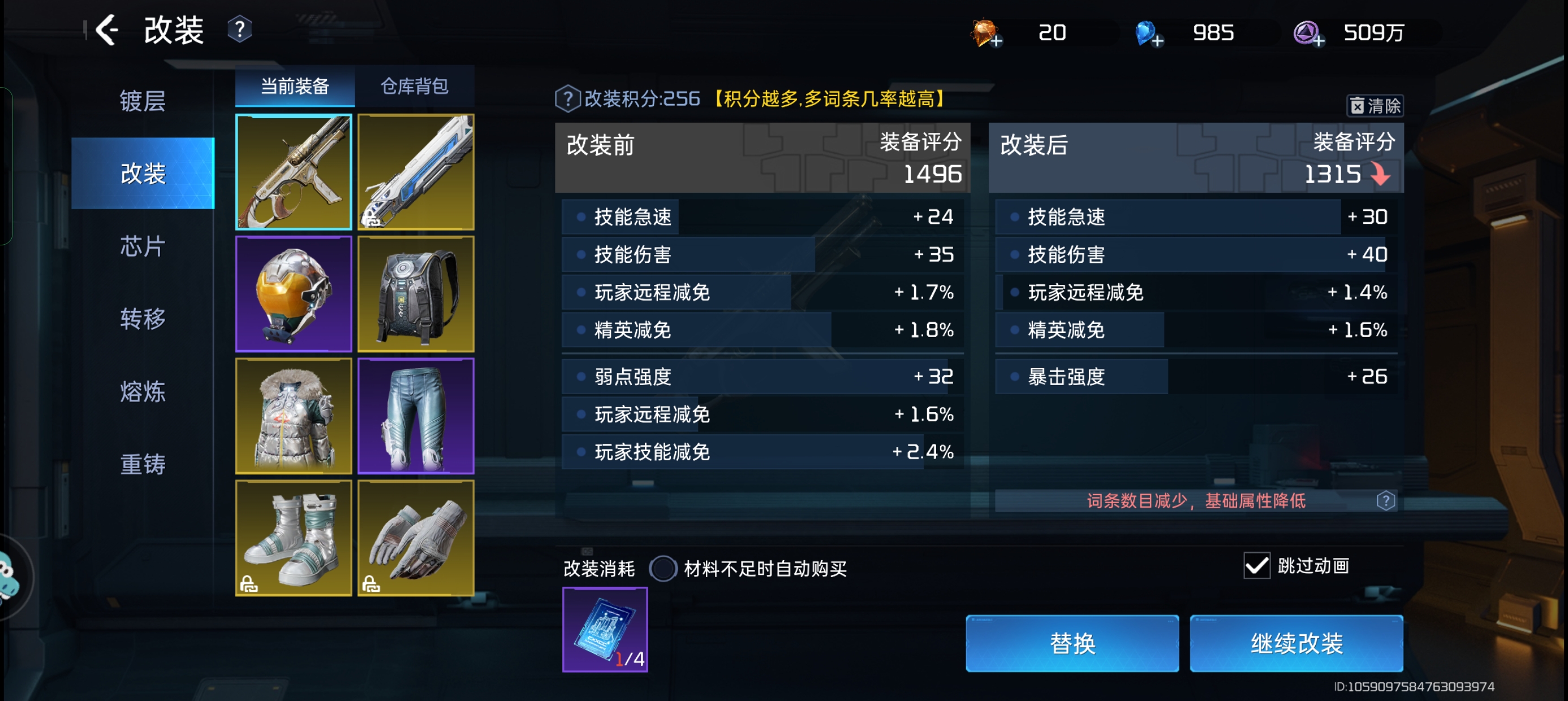 ⭐这里注意的是一定要【金色装备】才可以去改装,紫色装备改装后进阶金色原有改装就会消失。