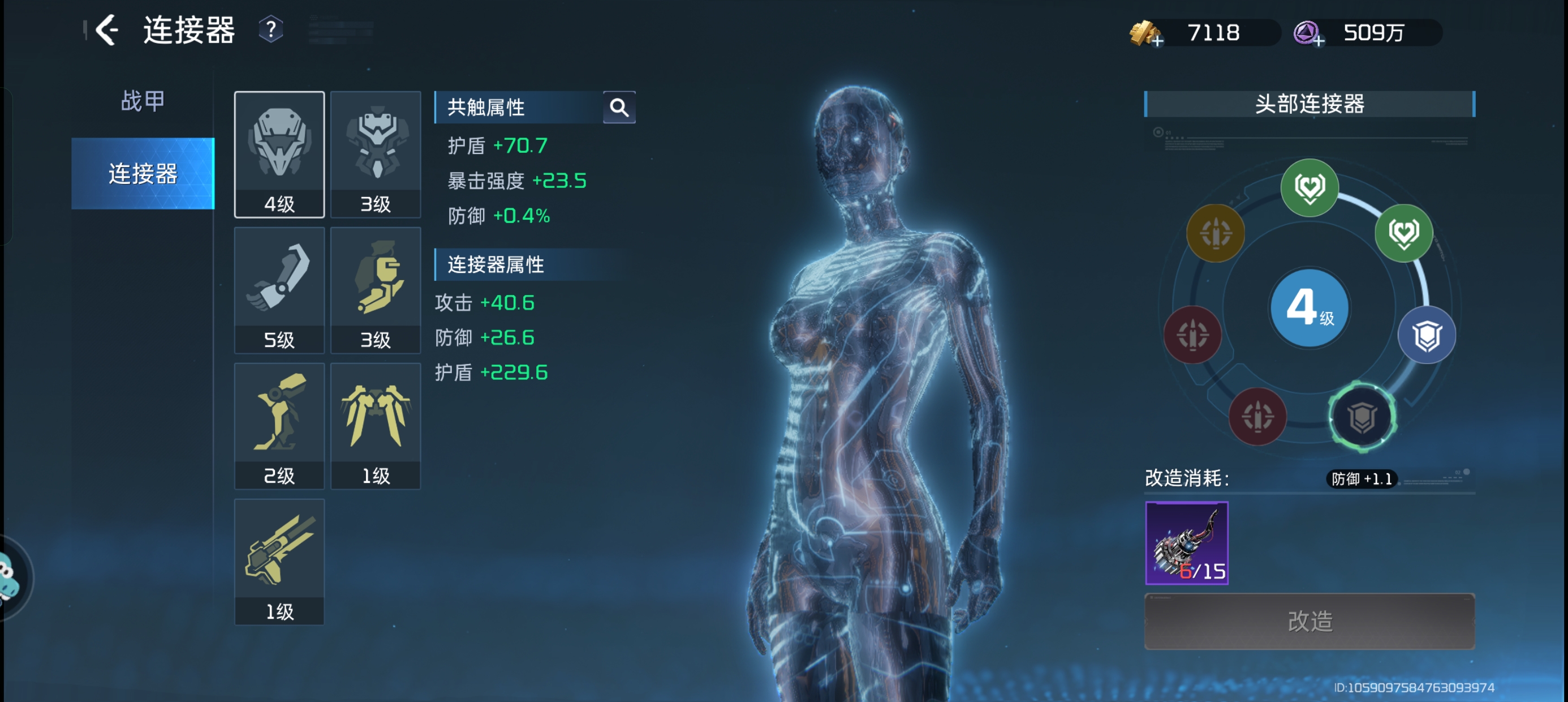 然后战甲的连接器狮子比较推荐平民玩家优先升级:头部、驱干、手部。
