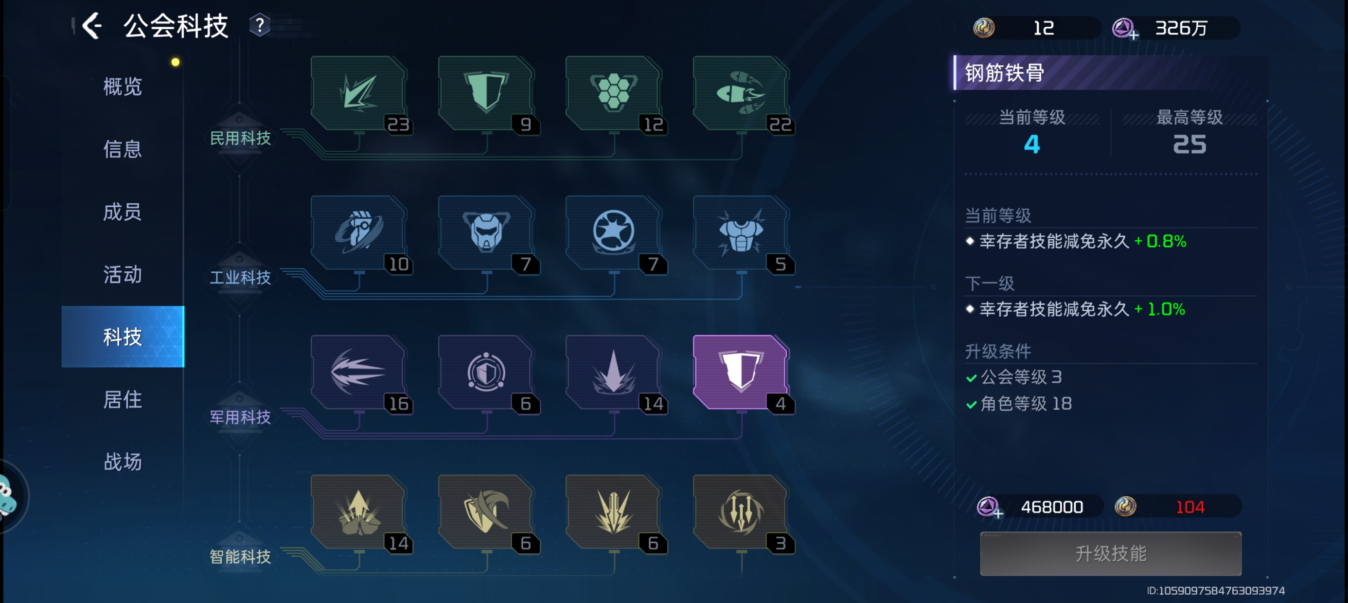 公会科技优先加第一排的【民用科技】,其他的根据自己的