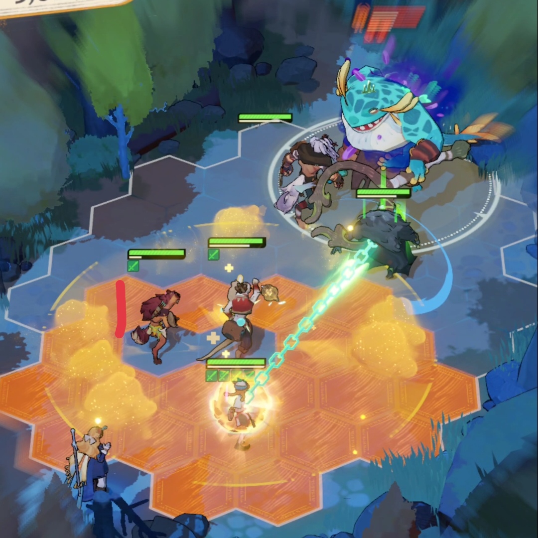这是跳跳第二次放大场景的截图,她往前跳一格,来到阿德左上角,进入狼人的buff圈,达成“我要圈五个”的成就。之后跳跳每次放大都在这个位置呆着。
