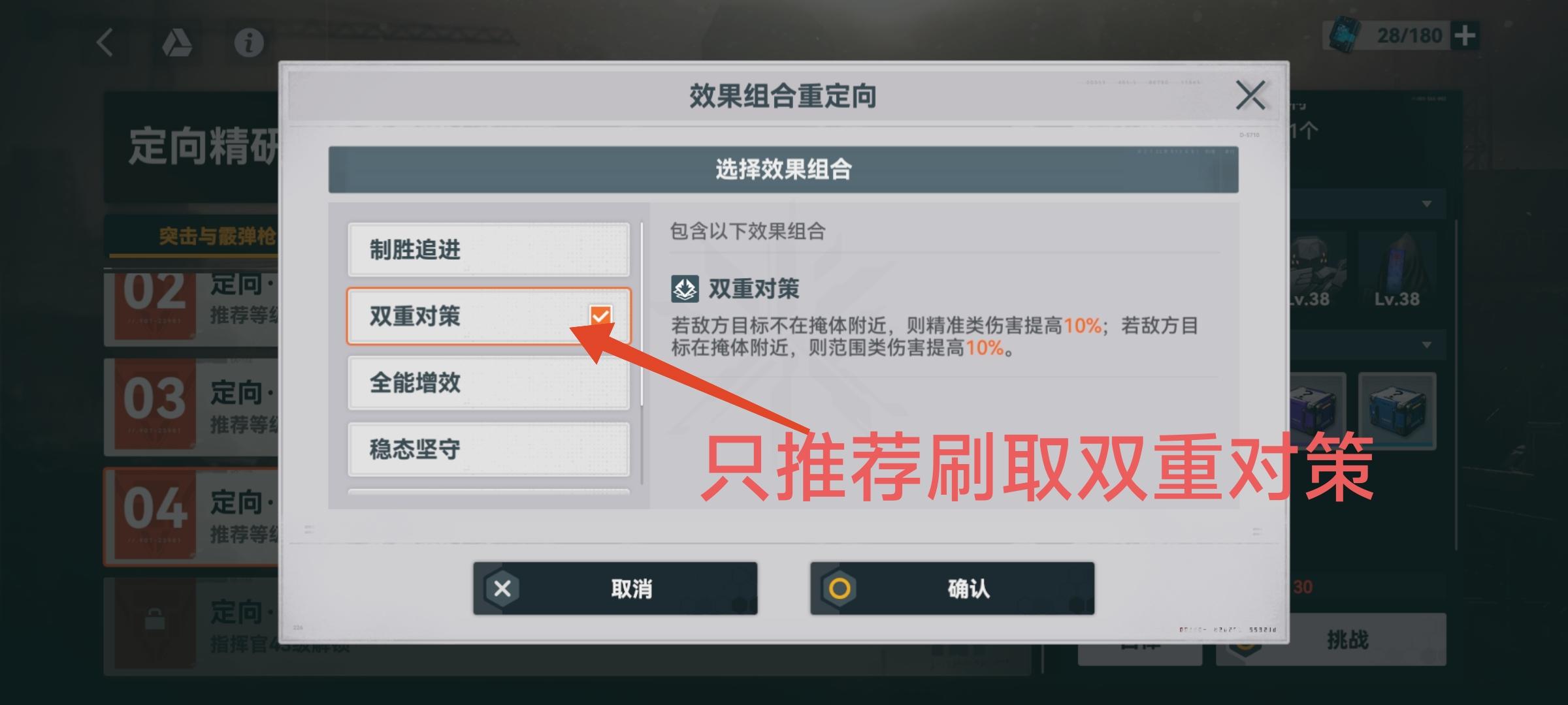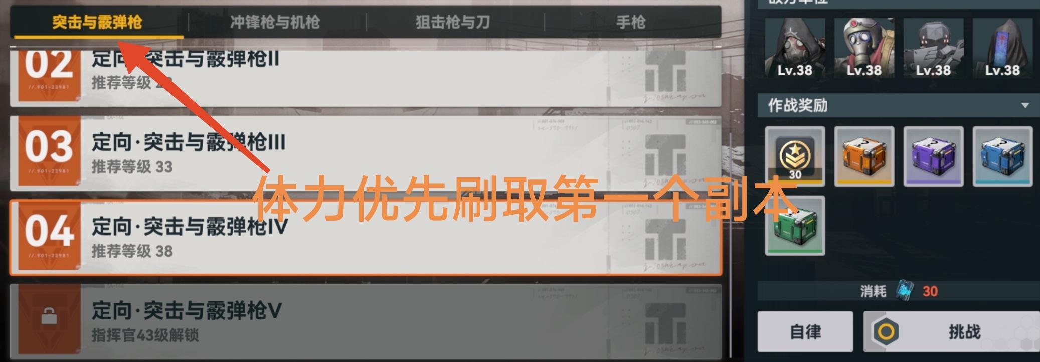 建议所有体力优先刷第一个副本,也就是突击步枪和霰弹枪,配件类型选择双重对策。给寇尔芙刷一套激活套装就行,不需要追求属性