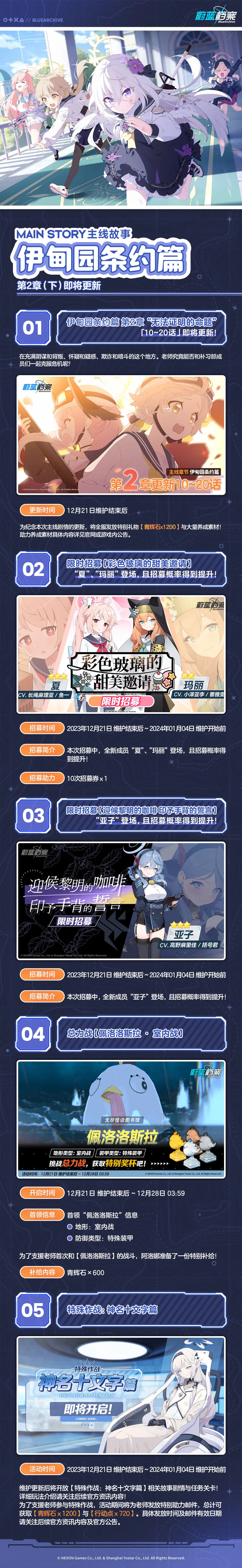 为纪念本次主线剧情的更新,将全服发放特别礼物【青辉石*1200】与大量养成素材!