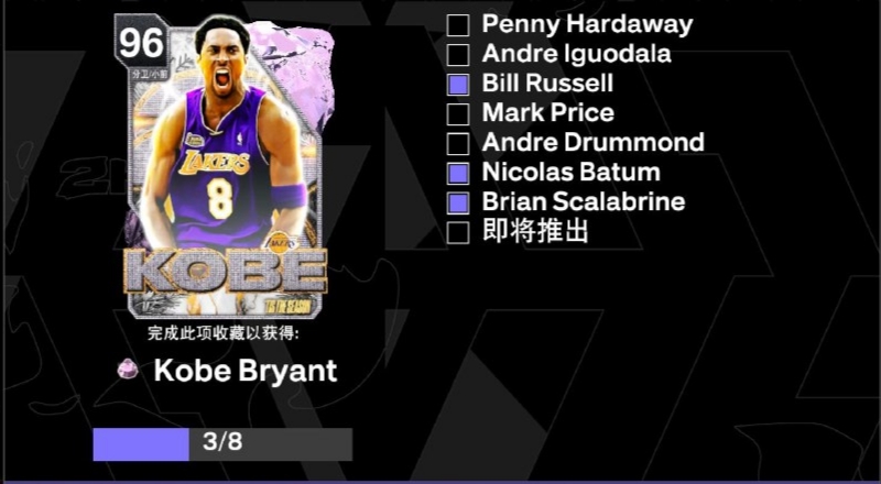 从下面开始到结束都是 粉钻 科比 · 布莱恩特的材料卡,目前材料卡还没有出完后续可自行关注游戏中闪耀一季的