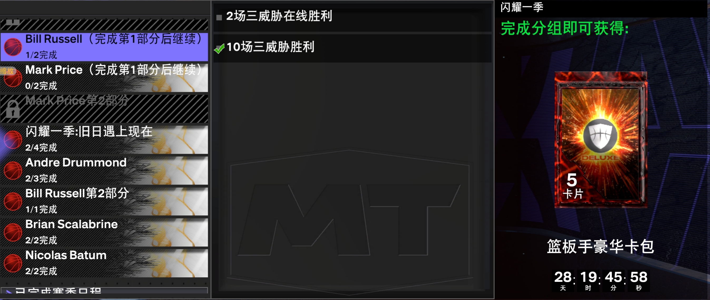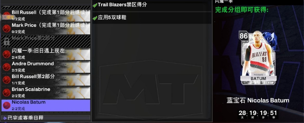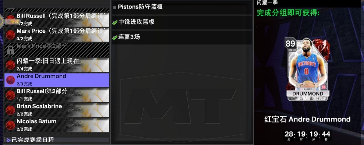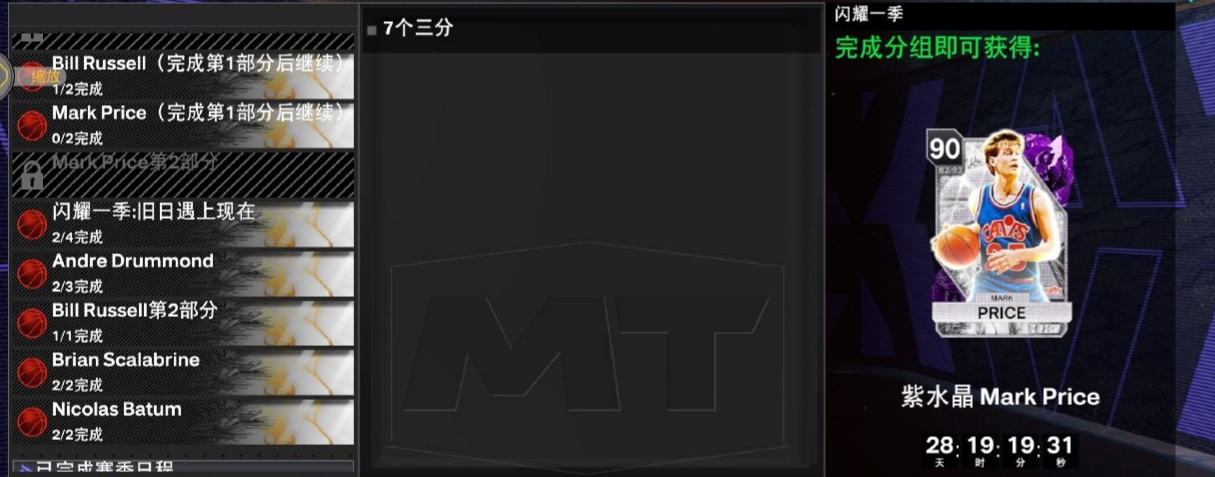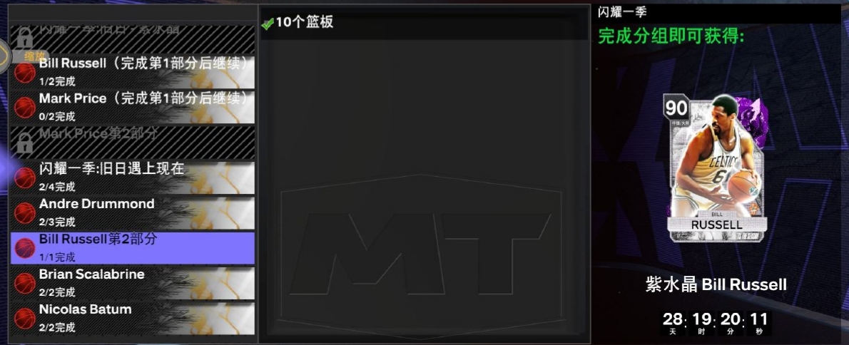 tips : 关于10 进攻篮板这个任务我使用 紫水晶 比尔 · 拉塞尔 在内线挂机,外线疯狂打铁搞的(可以先搞比尔拉塞尔再肝德拉蒙德