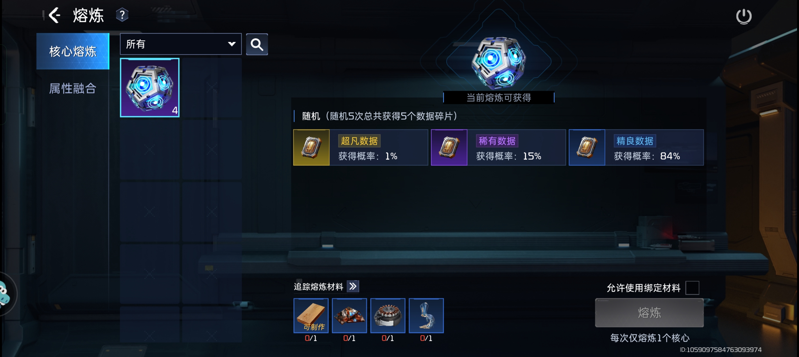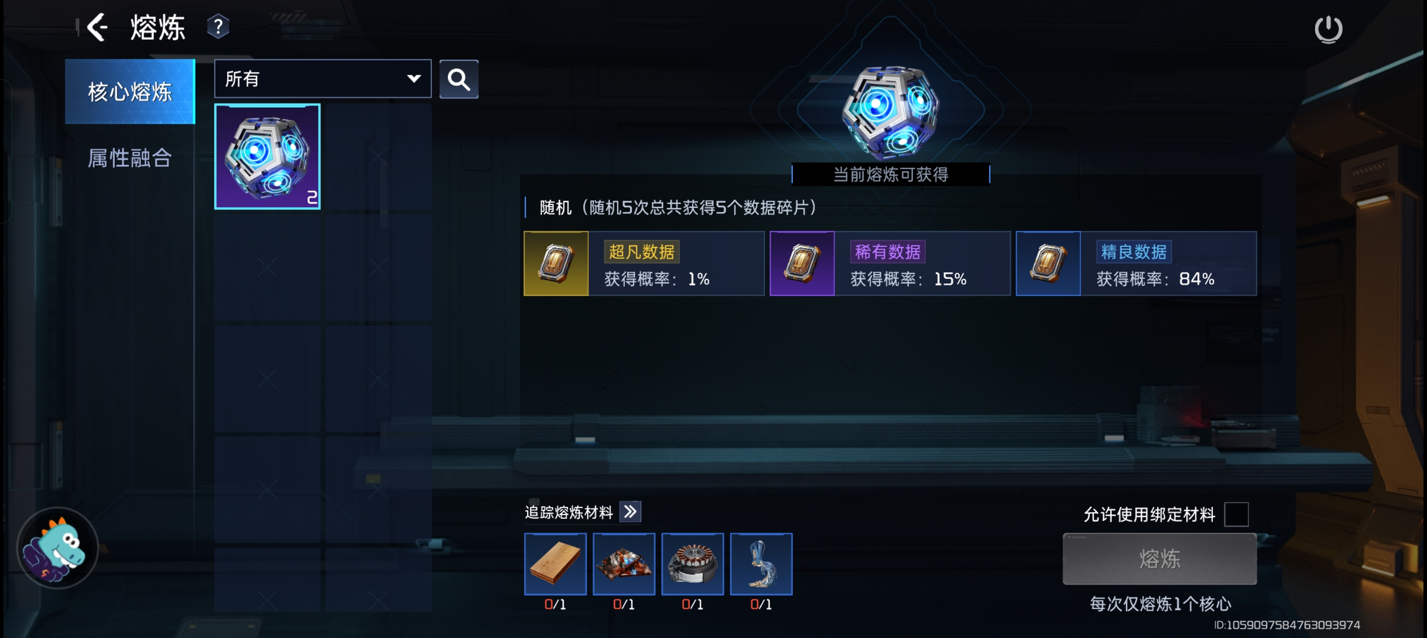 每个【能源核心】熔炼能够获得:5个【数据碎片】。